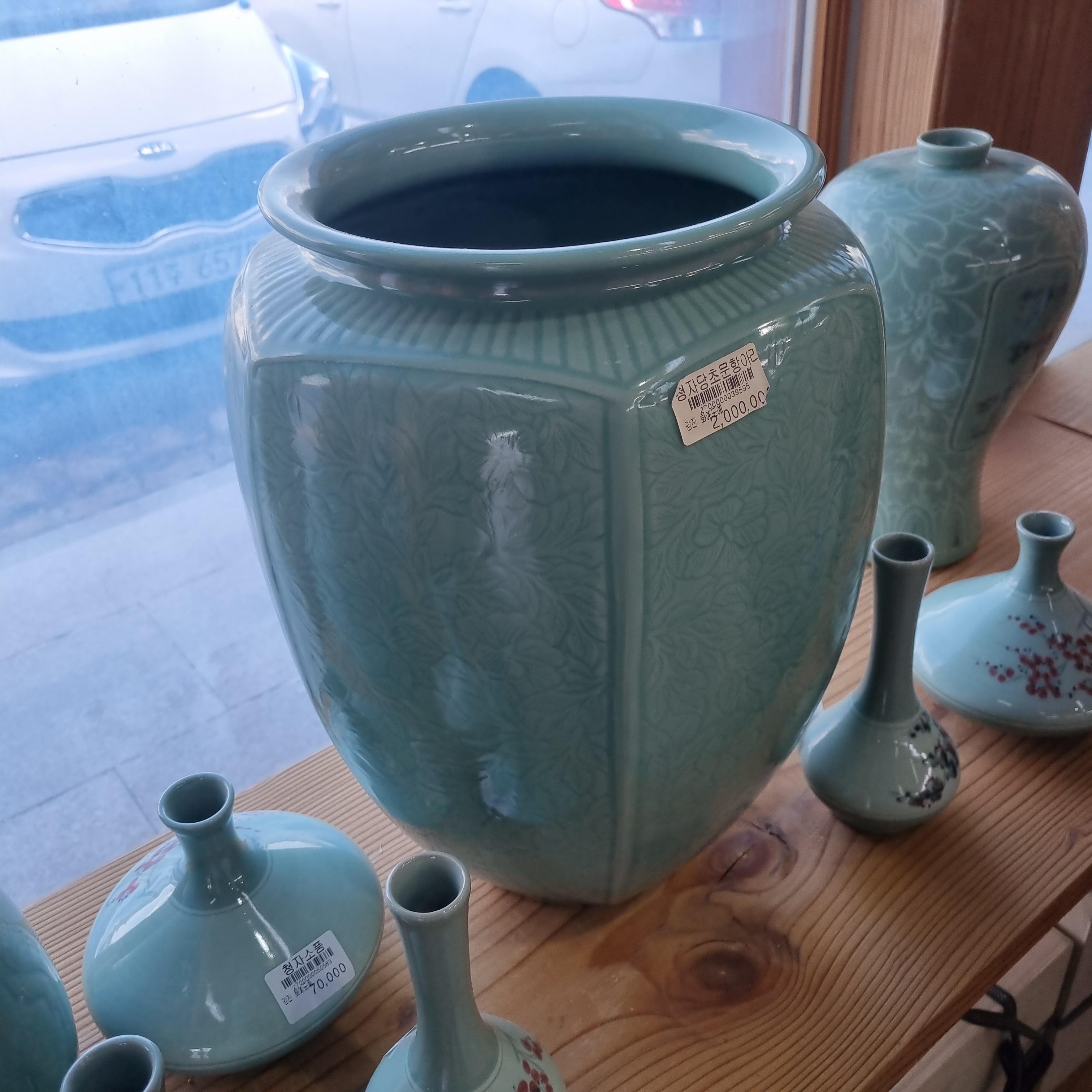 여기 있는 도자기들은 정말 강진에서 옛날 기법으로 그대로 만든 것으로 명품이라고 하는데 다만 옛날보다 많이 만들 수 있어 가격이 그나마 이 정도 저렴하다고 합니다.
