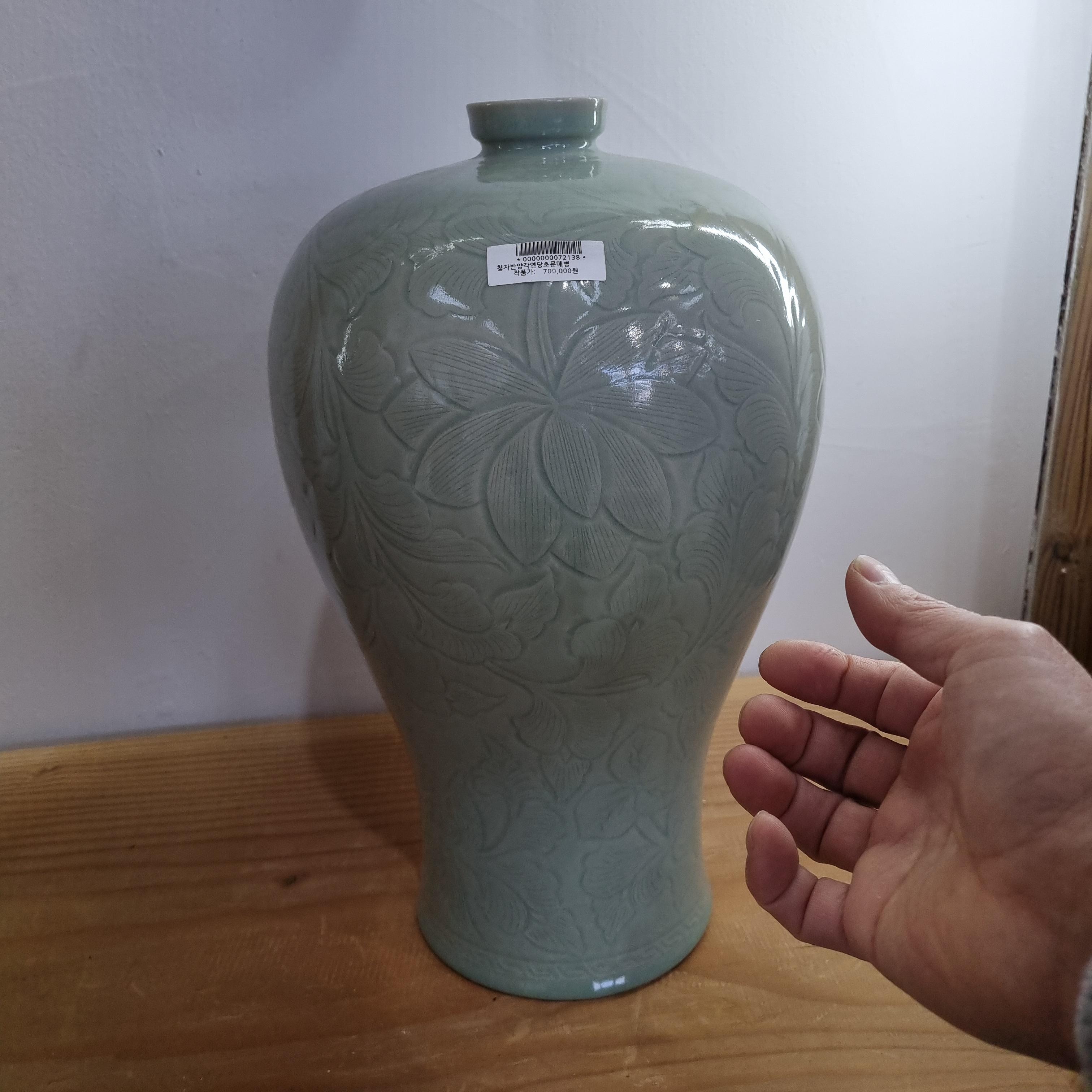 이것은 청자반양각연당초문매병으로서 가격은 70만원입니다. 비전문가가 보는 입자에서는 서로 비슷하는데 이름은 다르고 가격도 조금씩 다릅니다.
