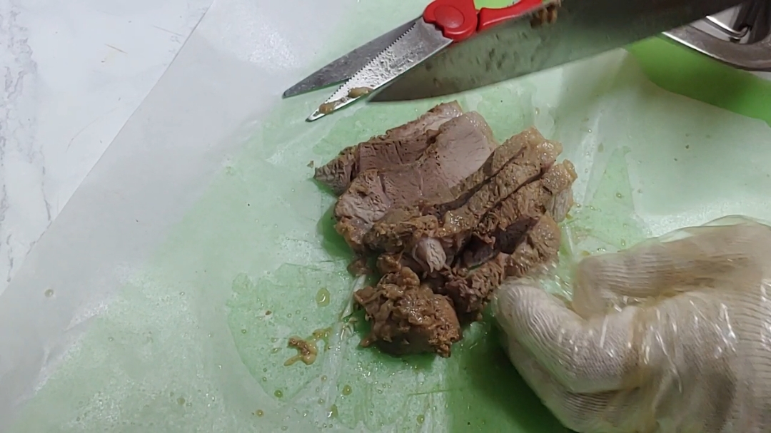 일부 두꺼운 고기부위에 가위로 칼집을 내어 주웠습니다