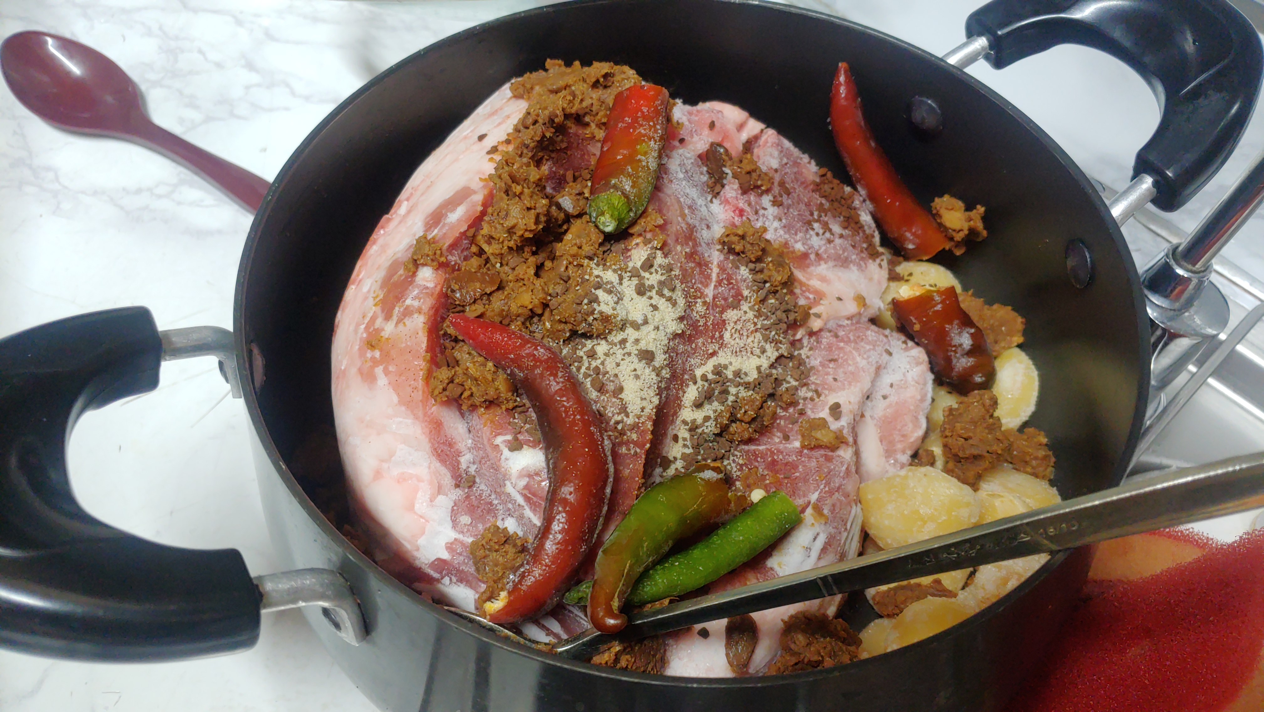 만약 큰 냄비만 있으면 고기가 물에 잠기지 않아도 상관은 없습니다